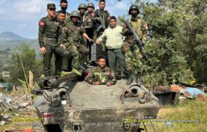 ဇန်နဝါရီ ၂၁၊ VOR မြောက်ဦး၊ မင်းပြား၊ ရသေ့တောင် စသည့် မြို့ ၄မြို့အခြေစိုက် စစ်ကောင်စီတပ်ရင်းများကို ရက္ခိုင့်တပ်တော် AA က တိုက်ခိုက် သိမ်းပိုက်နိုင်ခဲ့ပြီး ရက္ခိုင့်တပ်တော် ဒုစစ်ဦးစီးချုပ်ဒေါက်တာညိုထွန်းအောင် အာရက္ခစစ်သည်များနှင့် အတူ အောင်ပွဲခံနေပုံကို...