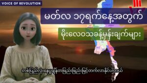 မတ် ၁၆၊ VOR ကချင်ပြည်နယ်၊ KIO ဌာနချုပ်ရှိရာ လိုင်ဇာအနီးတွင် စစ်ကောင်စီတပ်စခန်း အားလုံးတိုက်ထုတ်နိုင်ခဲ့ပြီး ထွက်ပြေးနေသည့် စစ်သားများကို KIA က လိုက်လံရှင်းလင်းနေကြောင်း ဒေသမီဒီယာများထံက သိရသည်။ မတ်လ ၇ရက်နေ့မှ စတင်ကာ KIA...