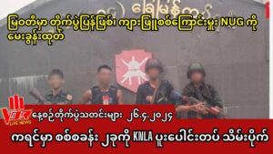 ဧပြီ ၂၇၊ VOR မန္တလေးတိုင်း ပြင်ဦးလွင်မြို့နှင့် ၁၀မိုင်အကွာ နောင်ချိုမြို့နယ် သရက်ကုန်း ကျေးရွာ တိုက်ပွဲတွင် သိမ်းပိုက် ရရှိသော စစ်လက်နက်ပစ္စည်းများနှင့် ခဲယမ်း မီးကျောက်များ ကို NUG က သတင်းထုတ်ပြန်သည်။ ဧပြီလ...